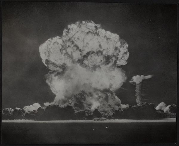 Nuclear Testing fireball 900 feet in diameter at testing site in Nevada.