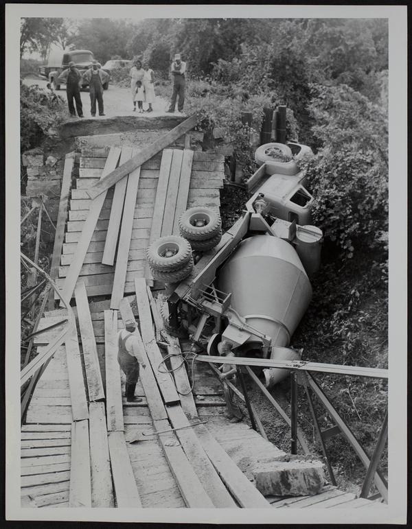 Lawrence Ready Mix cement truck in Cole Creek 3 miles south of Lawrence.