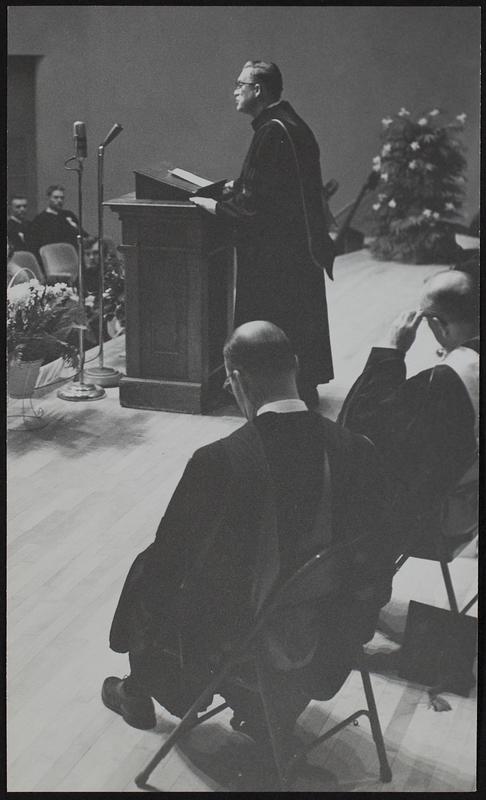 Baker University Dr. William John Scarborough addressing group present at his inauguration.