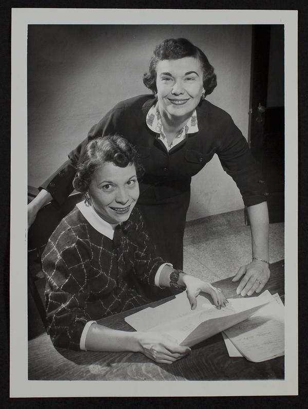 Community Chest Drive - Mrs. Bill Villee (seated) and Mrs. Bill Bodin.