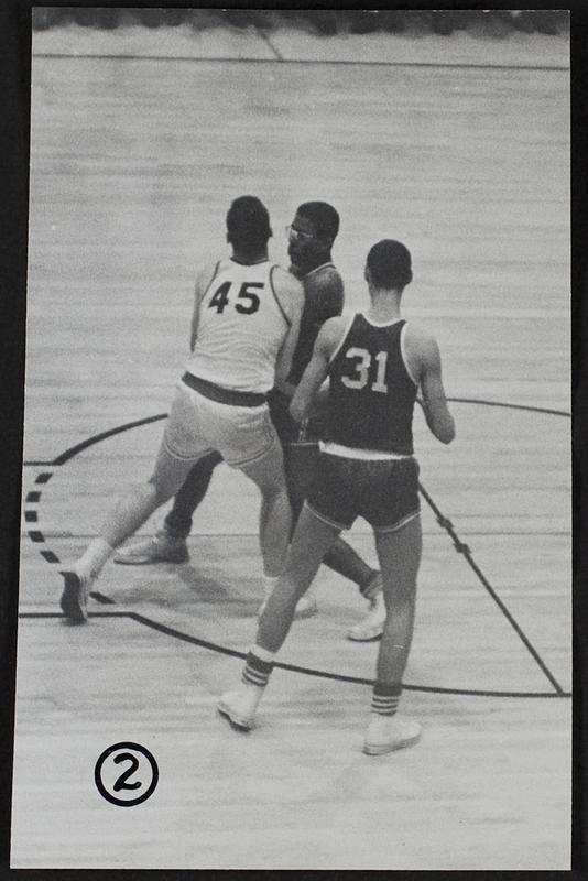 LHS Basketball - 1 - Gordon Abernathy (45) Ottawa's Fred Harder (31) and Marvin Wilson (25); Junior Smith (41) 2 - Abernathy and Wilson Fight for Ball. 3 - Abernathy Recovers ball. 34 unidentified 4 - Abernathy shoots.