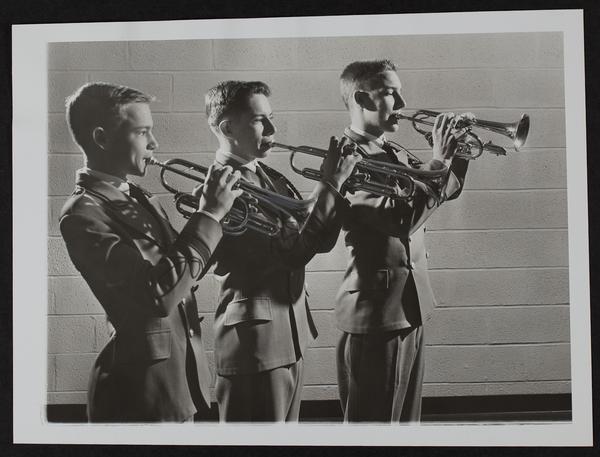 (L to R) Gary Winter, Bob Driscoll, David Hoe of Lawrence High School Band.