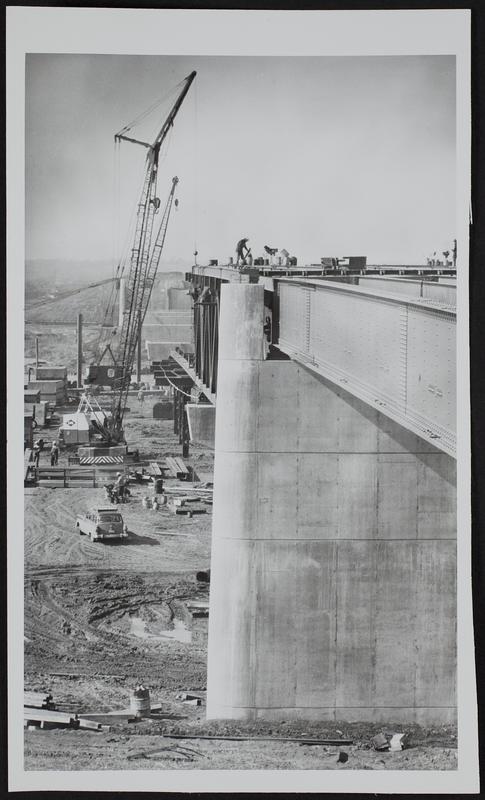 Kansas Turnpike - Fisher Memorial Bridge - construction resumes, looking west.