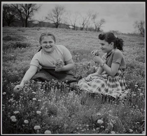 Wildflowers - Lora Lee Wiggins (left) and Linda Sue Thome picking flowers near Lone Star.