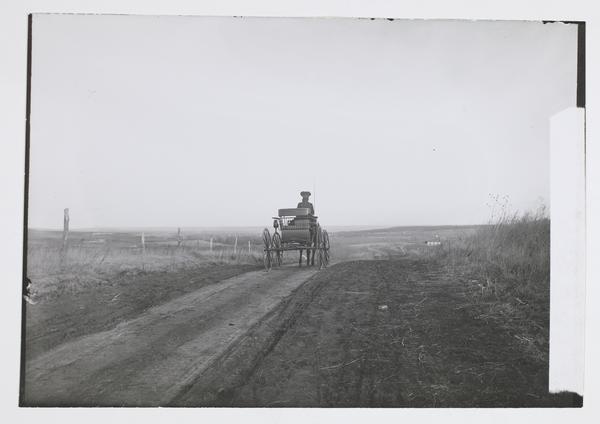 Woman Driving Buggy Through Kansas Country-side