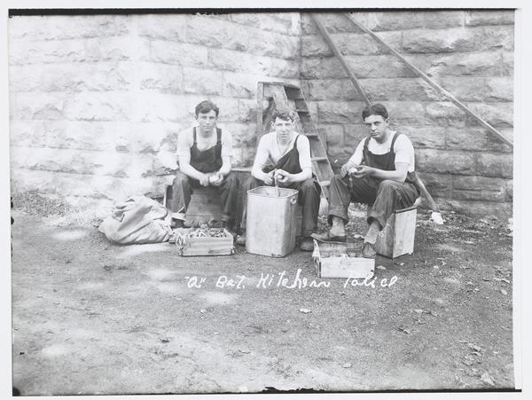 Three Soldiers, Barnes, Battery A, and Friends Peeling Potatoes