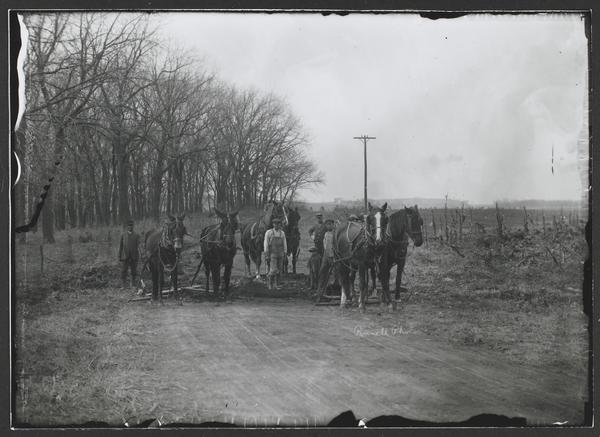Good Roads - Group of Men Working on Road with Horse and Mule Teams