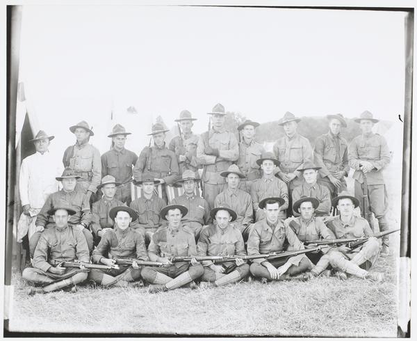 Militia Officers, Kansas National Guard in Camp, Some Holding Rifles