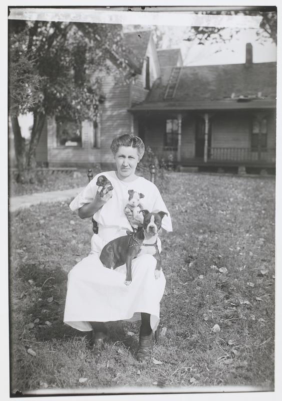 Blanche Miller in Front of House Holding Three Dogs