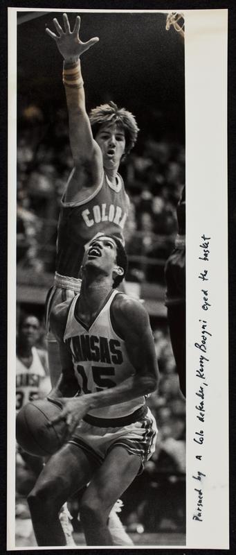 University of Kansas Basketball Player Kerry Boagni Lining Up a Shot With Colorado Defender Attempting to Block