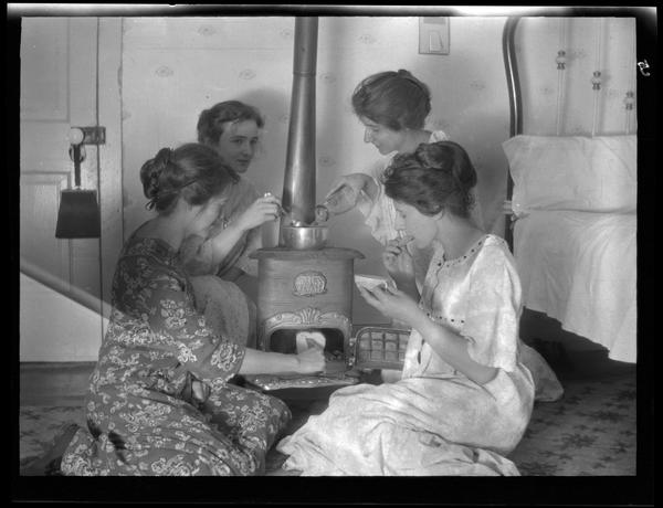 Group around a fireplace