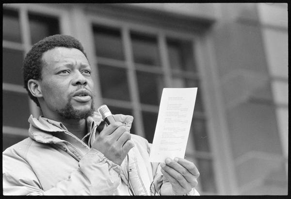 University of Kansas Student Protests: Anti-Apartheid Rally In Front of Strong Hall, April 2, 1979