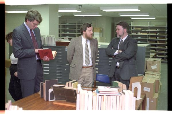 Three Judges Standing By Entries in the Synder Book Collecting Contest