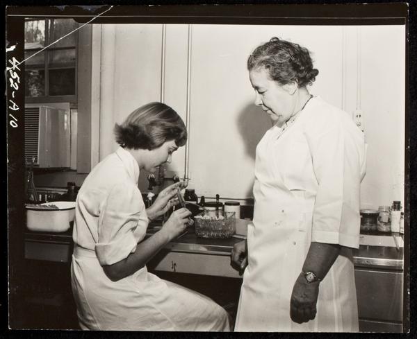 Cora Downs in Lab with a student