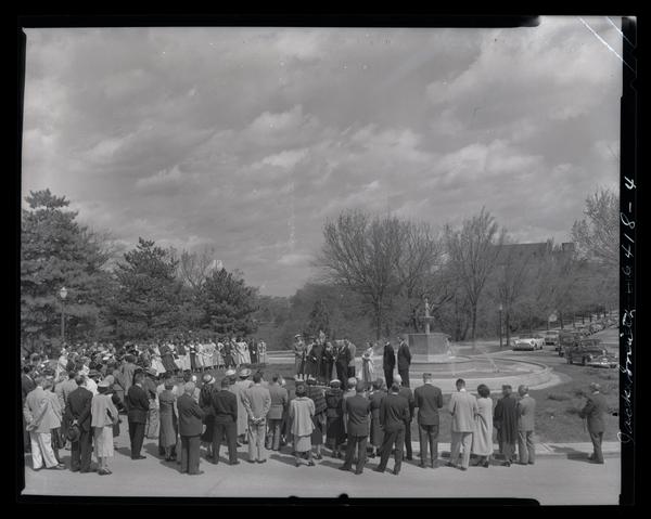 A Group of People Standing Around the Chi Omega Fountain