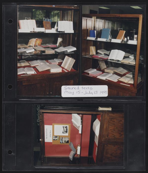 Sacred Texts library exhibit display cases