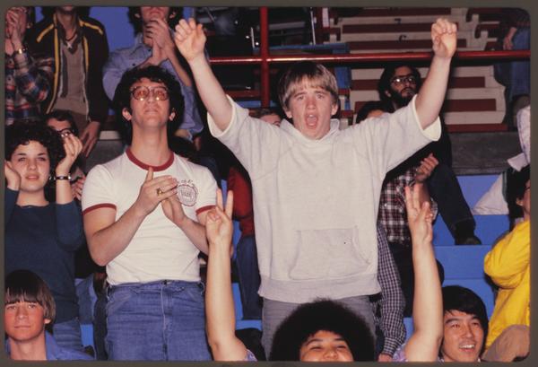 Two basketball fans cheering