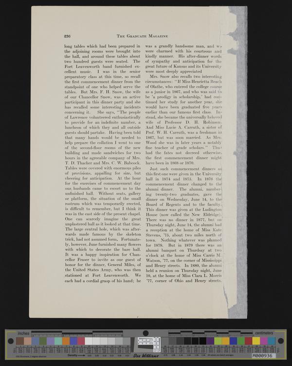 [31] (3 of 14) The Graduate Magazine of the University of Kansas, vol XIII, no. 8, May 1915, pp. 235-239: "'Commencement Dinners," by Carrie Watson/ "...