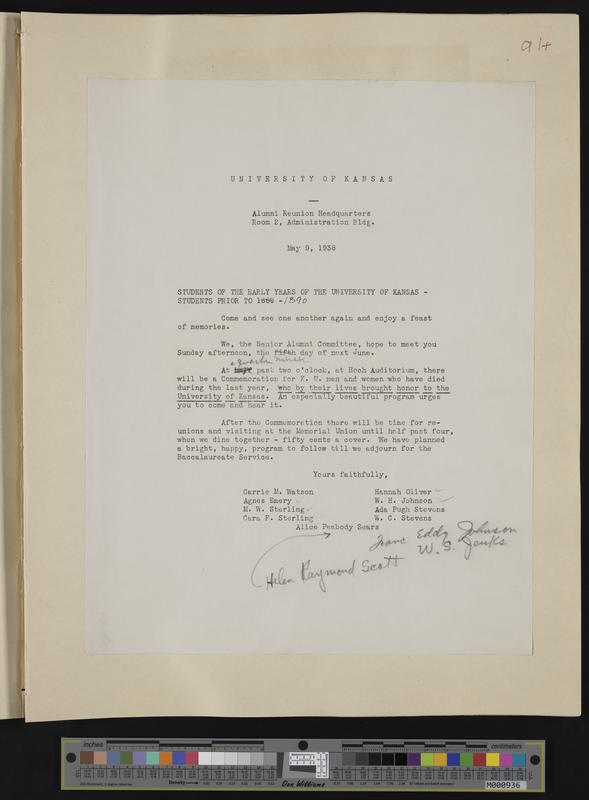 [91] 5-9-1938 invitation to the commemoration ofK.U. graduates prior to 1890