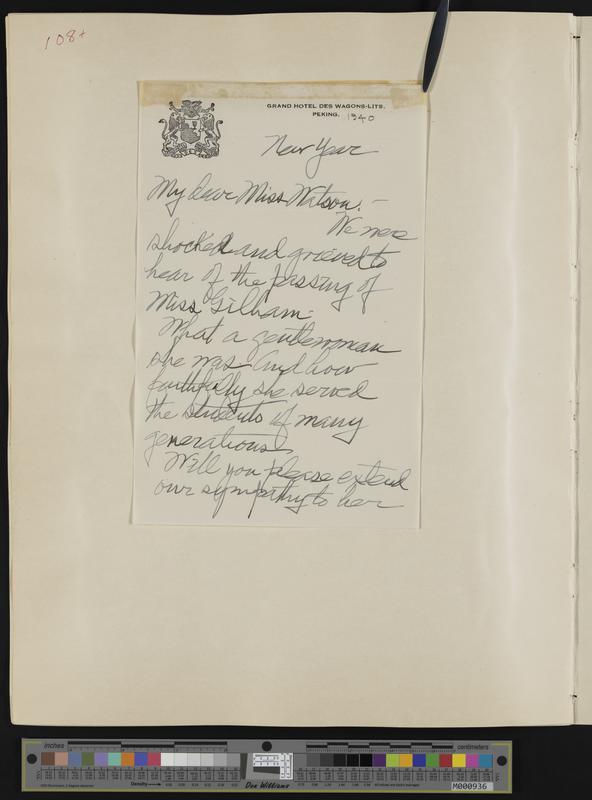 [108] (1 of 2) New Year's Day 1940, 2-page handwritten letter to Carrie Watson from retired KU Chancellor E.H. Lindley, writing from Peking