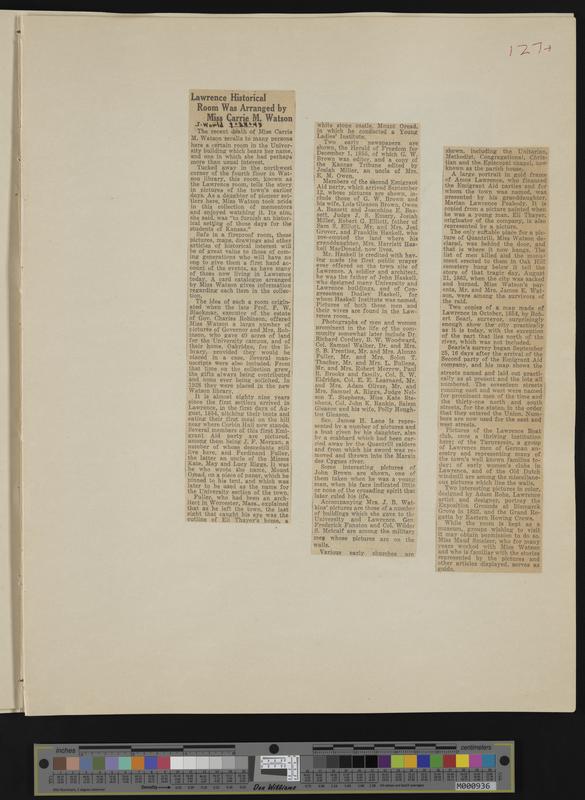 [127] Newspaper clipping: 7-24-1943 Journal World, "Lawrence Historical Room Was Arranged by Miss Carrie M Watson"