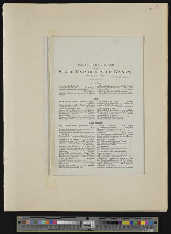 [145] (1 of 13) 1-1-1880 Catalogue of Books of the State University of Kansas (21 pages]