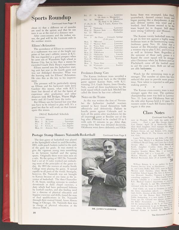 "Postage Stamp Honors Naismith-Basketball", Graduate Magazine, v. 60, no. 3, p. 30