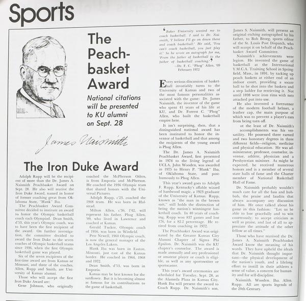 "The Peach-basket Award", Alumni Magazine, v. 75, no. 1, p. 6