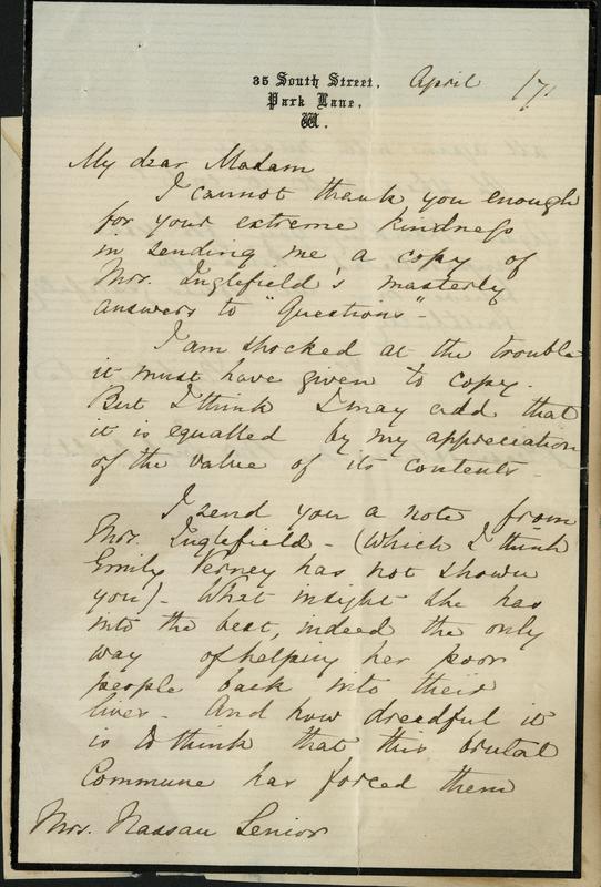 Letter to Jane Senior, 1871-04